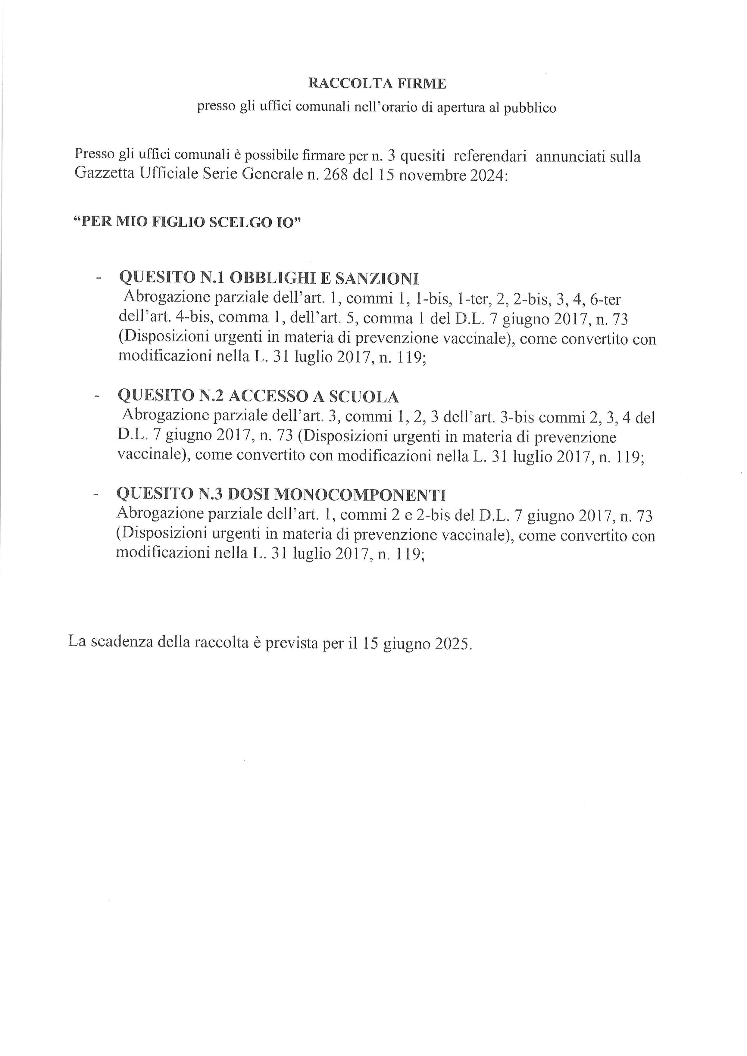 Raccolta firme n. 3 quesiti referendari: